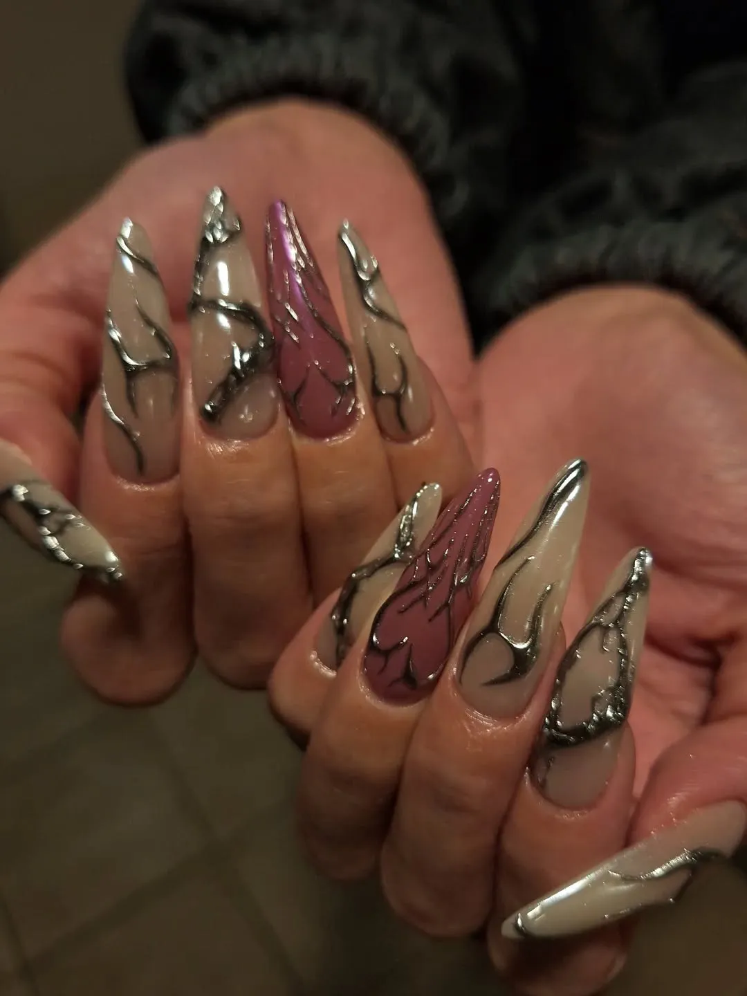 #ロングネイル #海外ネイル #シルバーネイル