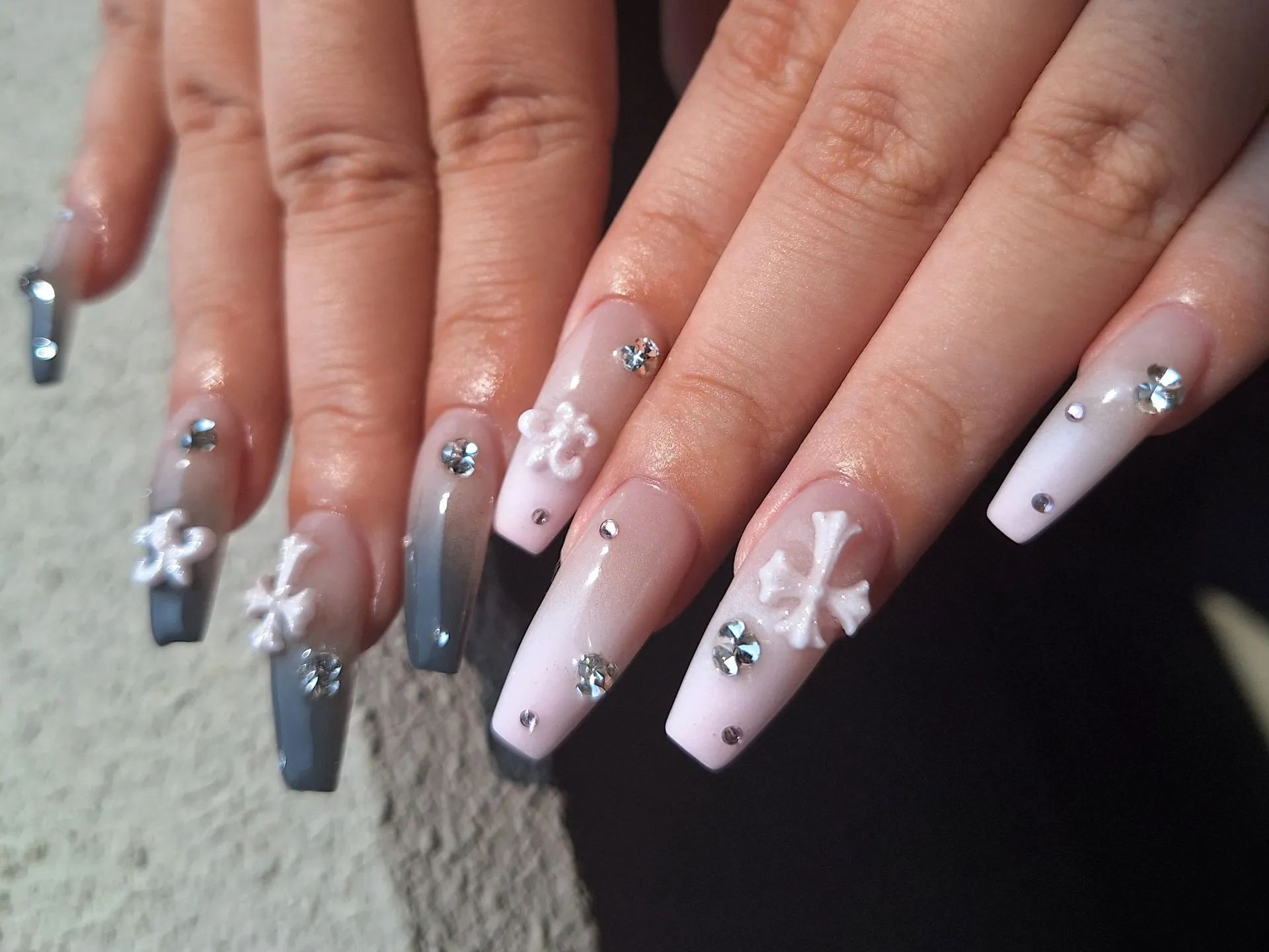 サロンでは、最新のジェルやパーツを使用し、持ちの良さと美しい発色を両立した施術が可能です。例えば、爪の根元にだけラメをあしらった「根元ラメ」や、ラインストーンを控えめに配置したデザインは、上品さとトレンド感を兼ね備えています。お客様の要望に合わせて、長さや形、デザインのバリエーションも自由にカスタマイズできます。